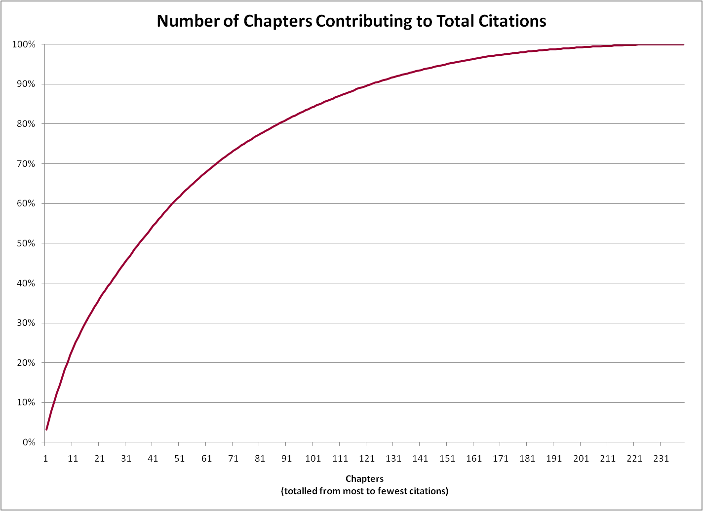 • The top ten chapters (4% of the chapters) have 22% of the citations.