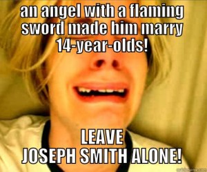 Some of these apologist sites act like the real victim in all of this is poor old Joseph Smith. If only we could see how scary it was for him to be threatened by that angel!