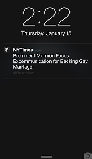 Givens then moves to the real meat of his argument: John Dehlin has claimed that among the reasons why he is being excommunicated is because of his support for Ordain Women and same-sex marriage.  In fact, it’s this part that really gets Givens because the NYTimes picked this part up and ran with it, sending a breaking news text to millions of people that said, “Prominent Mormon Faces Excommunication for Backing Gay Marriage.”